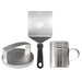 Press, season, and flip, the three step Blackstone formula to a perfectly delicious hamburger. This kit features our Press & Sear Burger Tool, 10 oz. Spice Dredge, and heavy duty Hamburger Spatula. The act of smashing your burger is a technique used around the world in the best burger joints. By pressing and searing your burgers you lock in all the flavor, while simultaneously creating that coveted smash burger crust. Use the spice dredge to complete that iconic taste and flavor. The Blackstone heavy duty wide Hamburger Spatula is ideal for flipping over those monster burgers and steaks. The heavy gauge stainless steel beveled edges make easy work of scraping and cleaning extra food debris off your griddle, making it a two in one product.